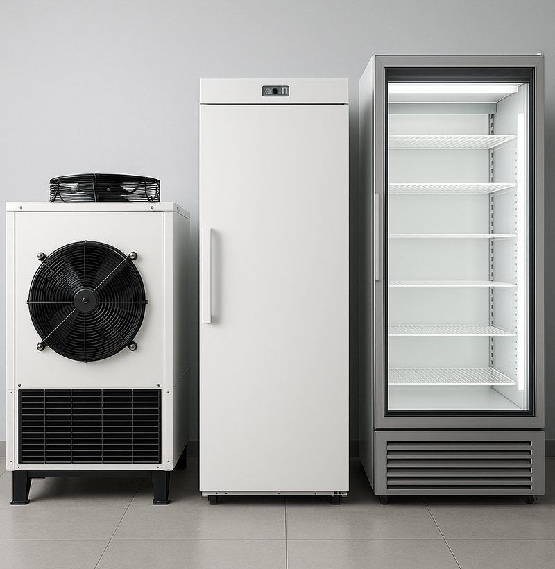 Chillers, freezers, display coolers