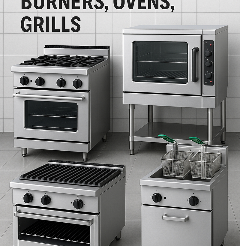 Burners, ovens, grills, fryers
